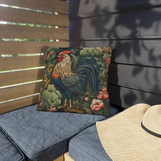 Colorful Rooster Outdoor Pillow, Farmhouse Chicken Throw Pillow, Rustic Farm Animal Cushion, Country Kitchen Accent Pillow, Cottage Decor, Patio Pillow Gift