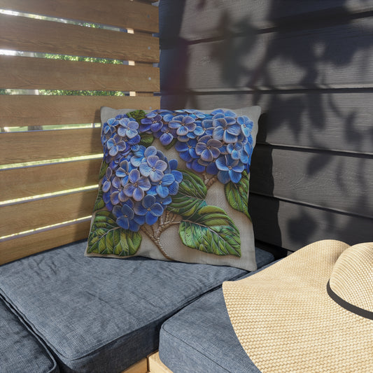 Blue Hydrangea Outdoor Pillow, Floral Throw Pillow, Cottage Garden Cushion, Botanical Accent Pillow, Farmhouse Patio Decor, Spring Summer Pillow Cover Gift