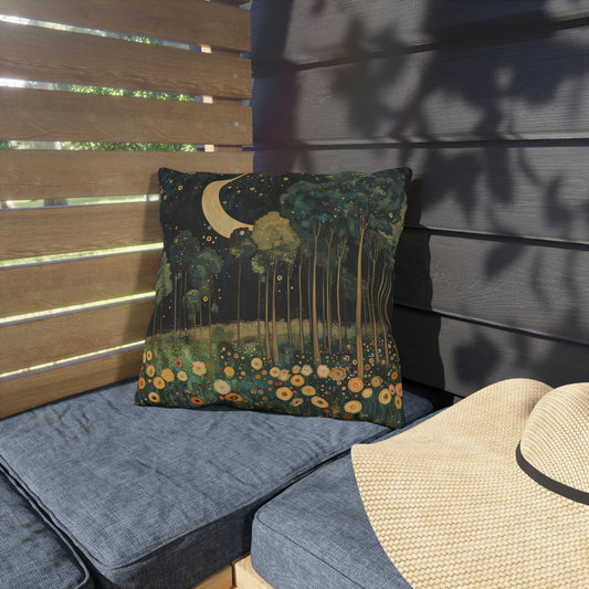 Moonlit Forest Outdoor Pillow, Night Landscape Throw Pillow, Celestial Woodland Cushion, Whimsical Nature Accent Pillow, Cottagecore Decor, Starry Night Patio Pillow