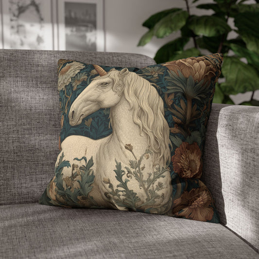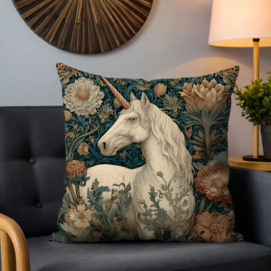 Unicorn Floral Pillowcase, Enchanted Woodland Unicorn Cushion, Vintage Tapestry Decor
