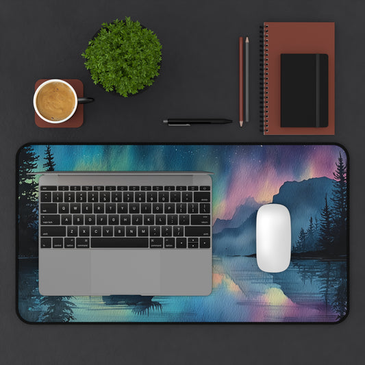 Aurora Moose Desk Mat, Northern Lights Mouse Pad, Night Sky Landscape Desk Pad, Nature Aesthetic Workspace Decor