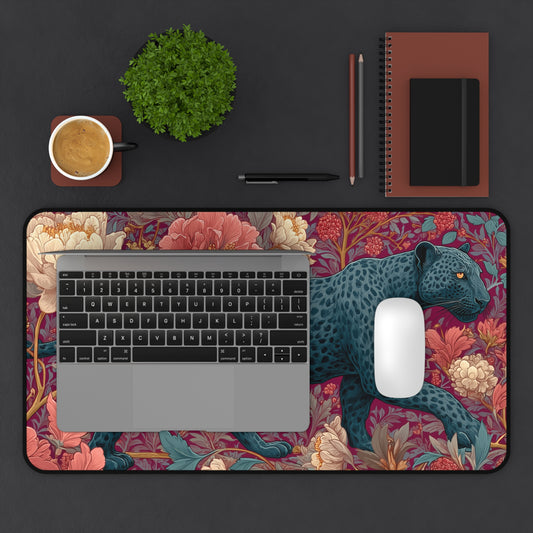 Midnight Panther Peony Desk Mat, William Morris Inspired Floral Mouse Pad, Aesthetic Workspace Decor, Botanical Desk Pad
