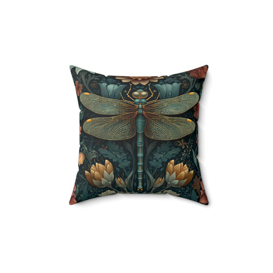 William Morris Inspired Dragonfly Pillow, Teal Botanical Art Nouveau Cushion, Elegant Floral Square Throw Pillow