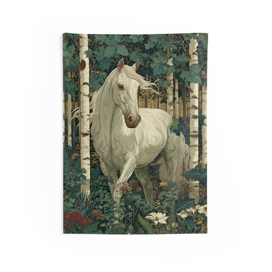 White Horse Forest Tapestry Birch Woodland Botanical Wall Hanging