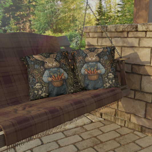 Farmhouse Bunny Outdoor Pillow, Rabbit with Carrots Throw Pillow, Cottagecore Bunny Cushion, Rustic Garden Decor, Spring Animal Accent Pillow, Easter Gift