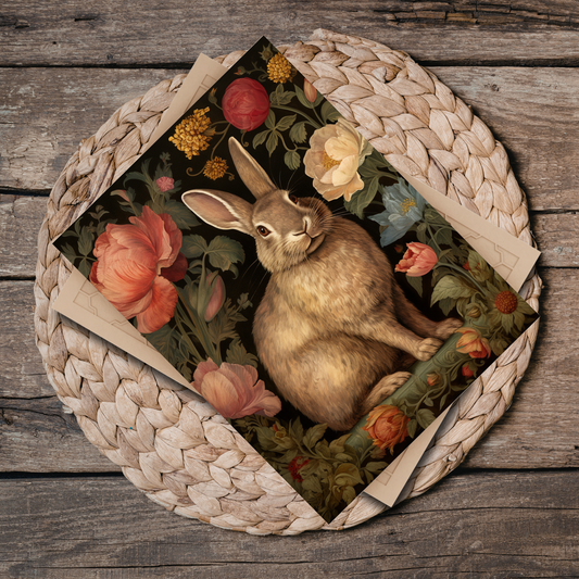 Vintage Floral Rabbit Ceramic Tile | Botanical Bunny Art 6x8 Glossy Cottagecore Decor