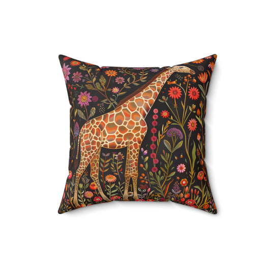 Forest Floral Giraffe Decorative Pillow Morris Inspired | Cottage-core Pillow