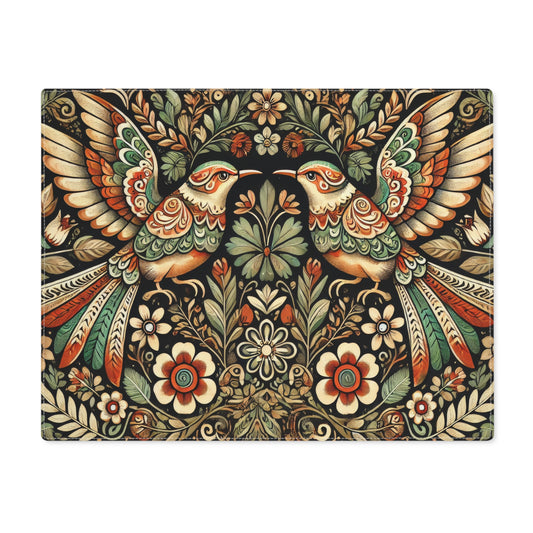 Folk Art Bird Placemat, Boho Vintage Floral Table Decor with Whimsical Nature Motif
