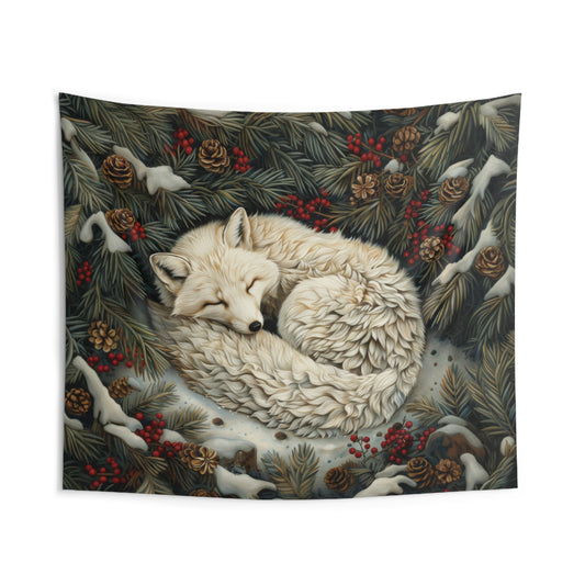 Tapestry of Art Deco Winter Arctic Fox, William Morris Inspired Decorative Indoor Wall Tapestries, Cozy Home Decor