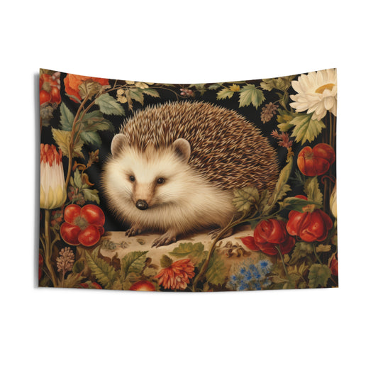 Tapestry of Botanical Hedgehog | William Morris Medieval Style Wall Art | Cottagecore Hanging and Home Decor
