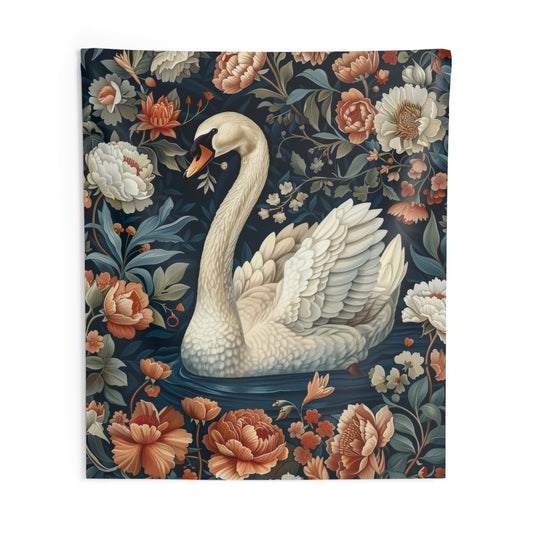 Tapestry of Botanical White Swan | William Morris Inspired Cottagecore Hanging and Home Decor