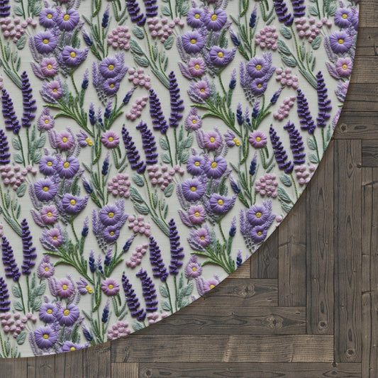 Sweet Lavender Embroidery Pattern Round Area Rug, Housewarming Gift