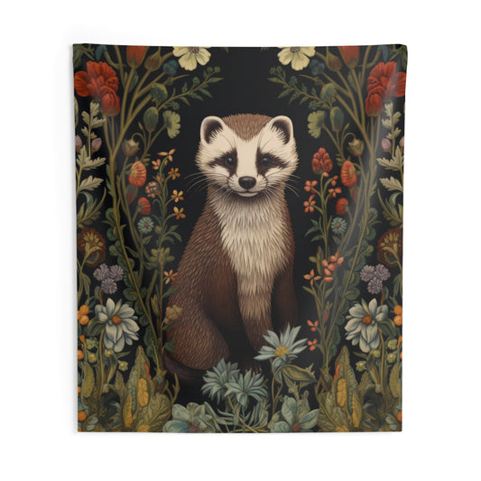 Tapestry of Botanical Black-footed Ferret, William Morris Inspired Cottagecore Hanging and Home Decor