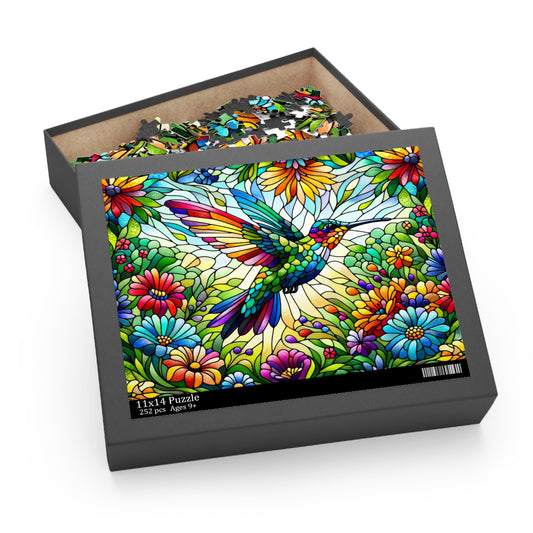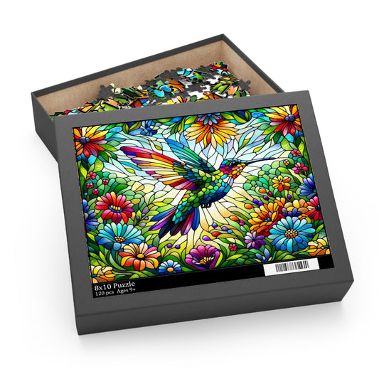 Stained Glass Spring Hummingbird Puzzle (120, 252, 500-Piece) Family Jigsaw Puzzle, Puzzle Box Gift