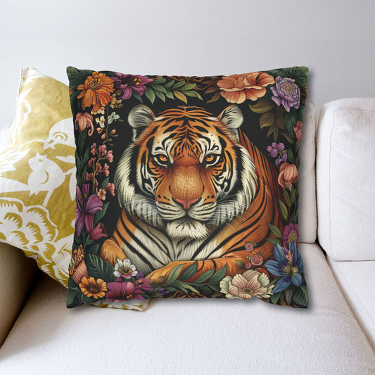Topical Tiger Throw Decorative Pillowcase, Morris Inspired | Cottage-core Pillowcase