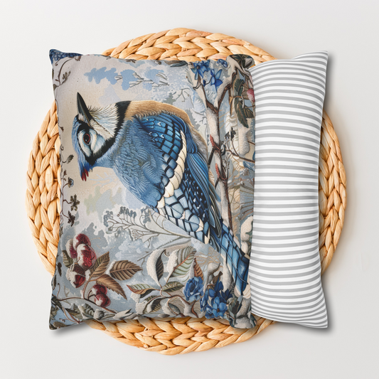The Blue Jay Hellebores Garden Decorative Pillowcase, William Morris Inspired Vintage Home Decor