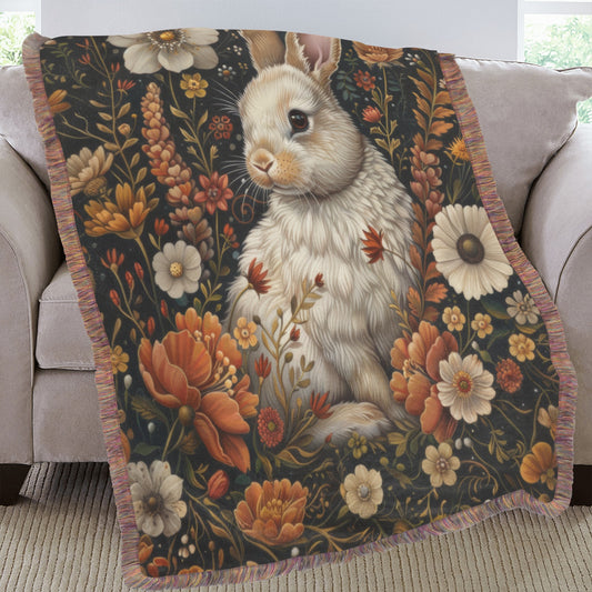 Victorian Black Unicorn Crescent Moon Stars Art Woven Blanket, William Morris Style - Home Decor Gift, Cozy Throw, Bedspread, Wall Tapestry