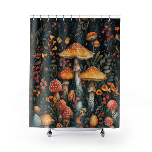 William Morris Inspired Botanical Mushroom Print Shower Curtain, Vintage Art Decor Bathroom Curtain, Housewarming Gift