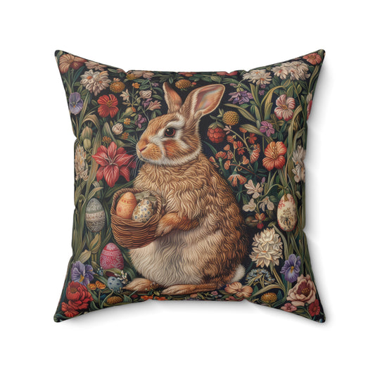 William Morris Inspired Easter Bunny Forest Florals Square Pillow, Throw Pillow, Home Decor, Accent Pillow, Easter Decor