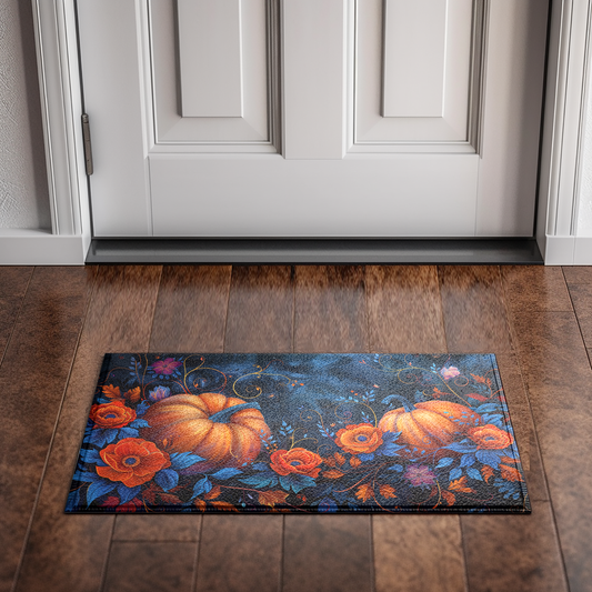 Autumn Pumpkin Floral Doormat, Fall Harvest Entry Rug with Vibrant Seasonal Design, Indoor Outdoor Decor