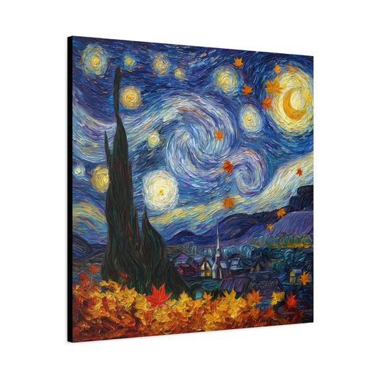 Regular price From $35.99 USDRegular priceUnit price / per$44.99 USDSale price From $35.99 USDAutumn Starry Night Canvas Wall Art, Van Gogh Inspired Sky with Falling Leaves, Matte Stretched Canvas 1.25"