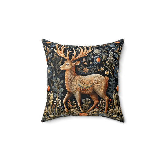 William Morris Inspired Victorian Forest Deer, Cottagecore Decorative Pillow, Home Decor Accent