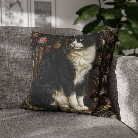 William Morris Inspired Tuxedo Cat Vintage Bookshelf Botanical Decorative Pillowcase