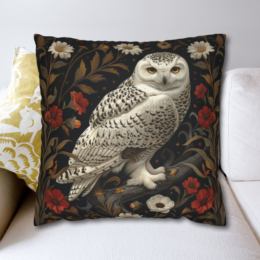 William Morris Inspired Snowy Owl Winter Botanicals Home Decor Pillow