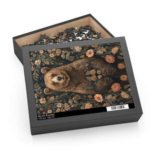 William Morris Inspired Forestcore Mama Bear Jigsaw Puzzle (120, 252, 500-Piece) Gift-Ready Box, Adult Jigsaw Puzzle, Gift Him Her
