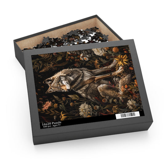 William Morris Inspired Forest Wolf Puzzle Box (120, 252, 500-Piece) Family Jigsaw Puzzle, Puzzle Box Gift
