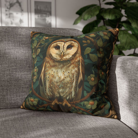 Woodland Owl Square Pillowcase, Cottagecore Forest Decor, William Morris Inspired Cushion, Home Decor Accent