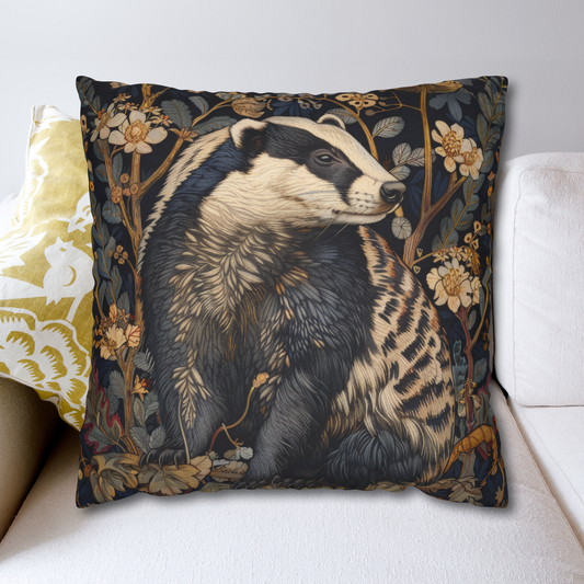 Woodland Elegance Badger Polyester Square Pillow | William Morris Inspired Badger Decorative Pillow