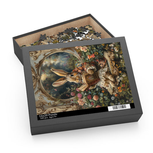 William Morris inspired Rococo Bunny With Vintage Book Jigsaw Puzzle Box (120, 252, 500-Piece) Family Jigsaw Puzzle, Puzzle Box Gift