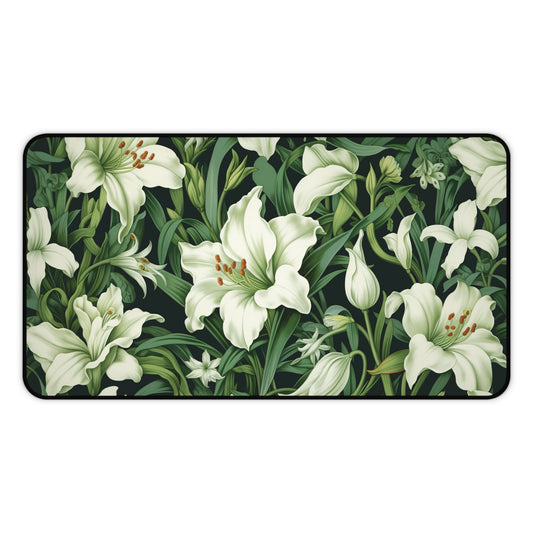 William Morris Inspired White Lily Desk Mat 2 Sizes | Green Home Decor Gift Desk Mats
