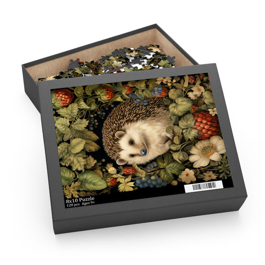 Botanical Hedgehog | William Morris Inspired | Cottage-core Puzzle Box (120, 252, 500-Piece) Family Jigsaw Puzzle, Puzzle Box Gift For Her