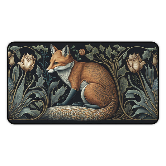 Botanical Fox Desk Mat 2 Sizes | Aesthetic Floral Fox Desk Mat | Office Decor GiftDesk Mats
