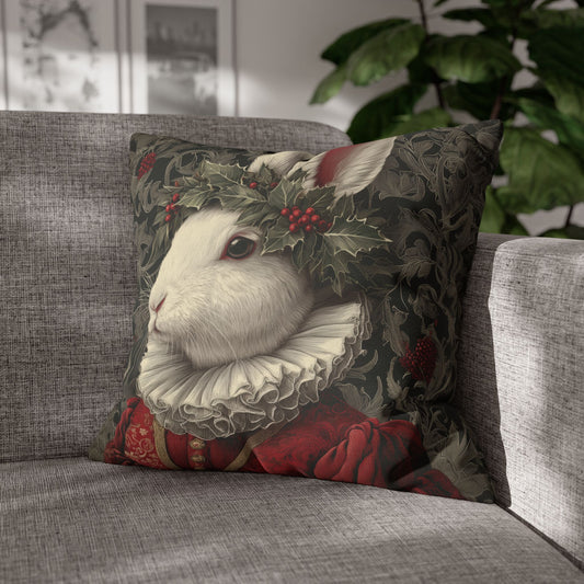Christmas Rabbit Pillowcase, Holiday Bunny Cushion, Morris Inspired Festive Animal Throw Pillow for Cottagecore & Cozy Winter Décor