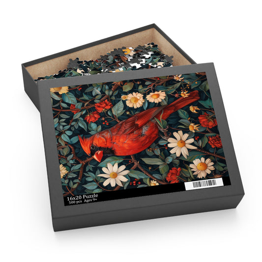 Cardinal Daisies William Morris Inspired Jigsaw Puzzle Box | Cottage-core Art Nouveau Puzzle (120, 252, 500 piece)