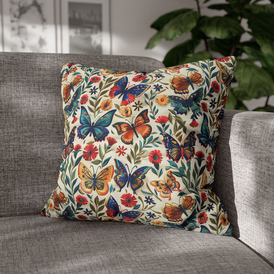 Colorful Spring Butterfly Embroidery-Style Pattern Pillowcase