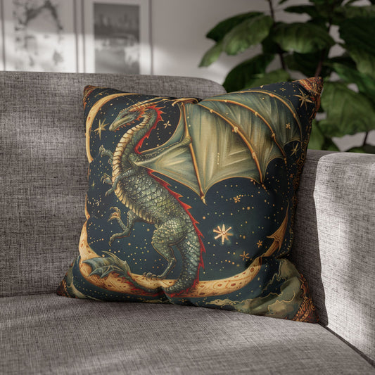 Dragon Moon Decorative Pillow, William Morris Inspired Vintage Home Decor, Magical Crescent Moon Cushion, Spun Polyester Square Pillow,