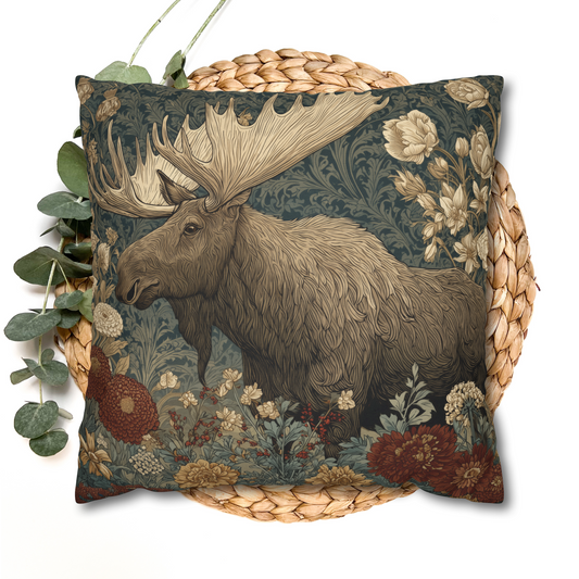 Regular price From $35.25 USDRegular priceUnit price / per$51.25 USDSale price From $35.25 USDRustic Moose Floral Throw Pillow, Vintage Woodland Decorative Cushion