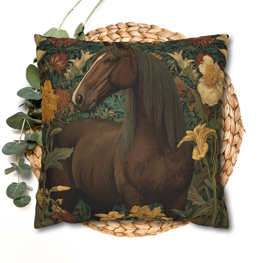 Majestic Horse Floral Pillow, William Morris Style Botanical Equestrian Cushion