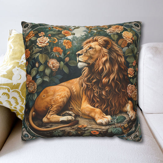 Forest Lion Decorative Polyester Square Pillow William Morris Inspired Cottage-core Pillow