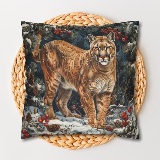 Winter Mountain Lion William Morris Inspired Decorative Pillow