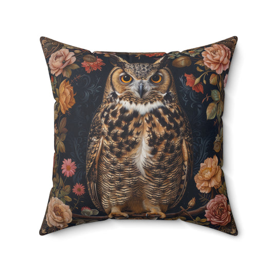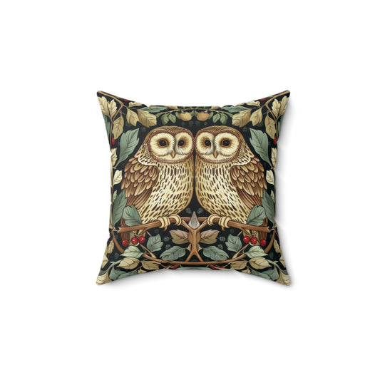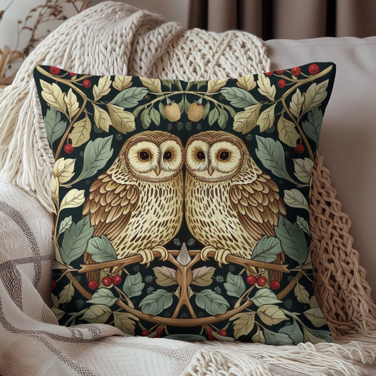 Forest Barn Owl Decorative Pillow Morris Inspired Cottage-core Pillow
