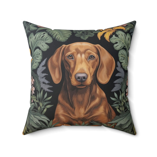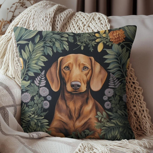 Botanical Brown Dachshund Decorative Pillow William Morris Inspired | Cottage-core Pillow