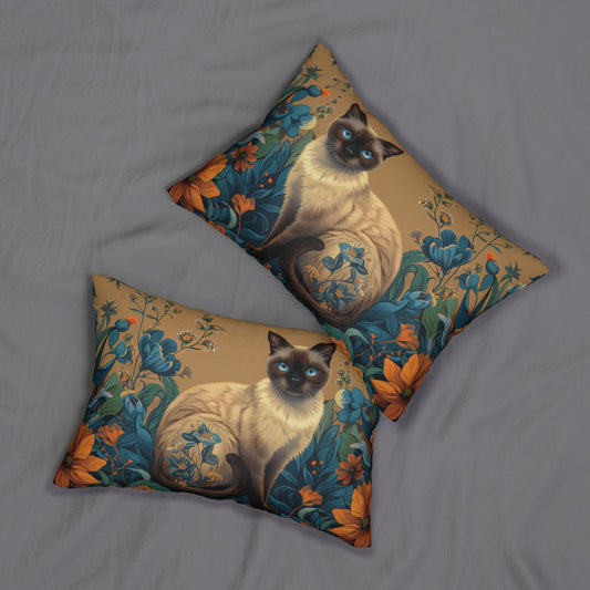 Siamese Cat Florals Garden William Morrium Inspired Lumbar Pillow
