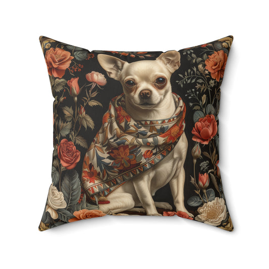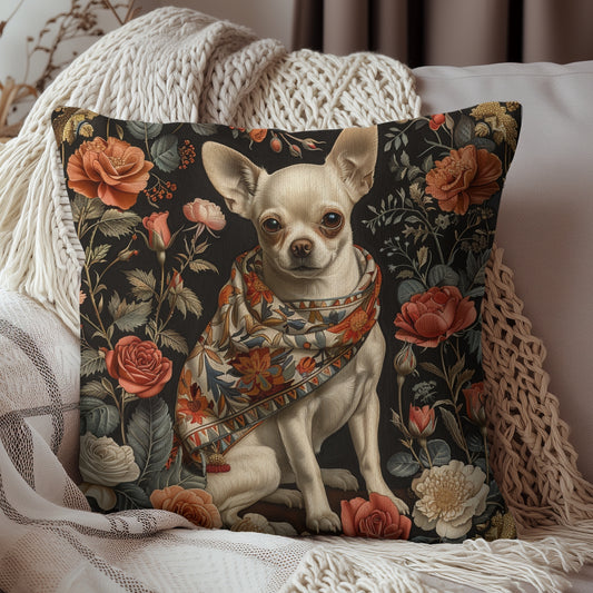Chihuahua Roses Garden Decorative Pillow William Morris Inspired | Cottage-core Pillow