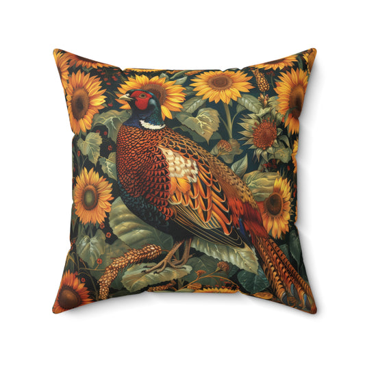 Pheasant With Sunflower Field Decorative Pillow William Morris Inspired | Cottage-core Pillow