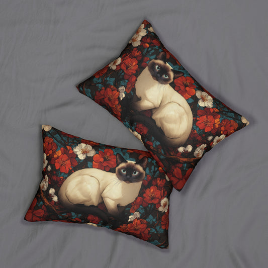 Siamese Cat Cherry Blossom Lumbar Pillow